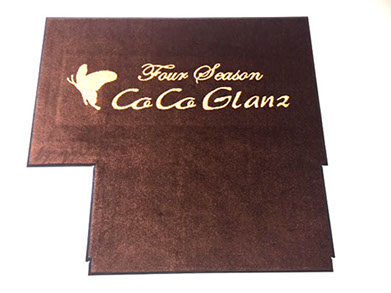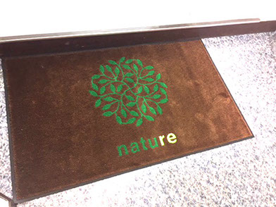 店名を織り込んだ玄関マットは店舗の顔としてお客様をお迎えいたします。