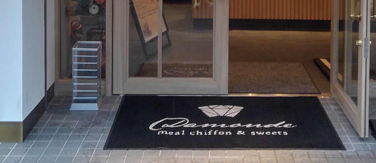 店名を織り込んだ玄関マットは店舗の顔としてお客様をお迎えいたします。